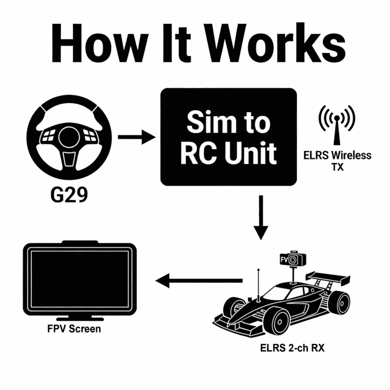 It uses an ELRS module TX and an ELRS 3 channels receiver, so you can put it in any R/C car.